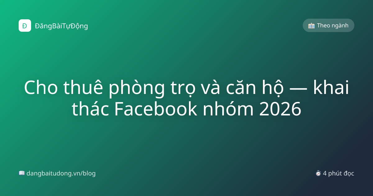 Phân khúc cho thuê (phòng trọ, căn hộ, mini house) là mảng BĐS dễ scale qua Facebook. Khách thuê 18-35 tuổi, active trên FB cao.