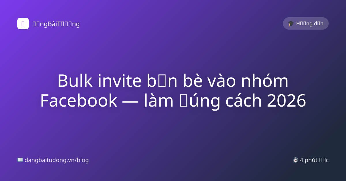 Mời 500 friend vào nhóm bạn quản lý = scale member nhanh. Nhưng làm sai = Facebook block invite 7-30 ngày. Bài này quy trình chuẩn.
