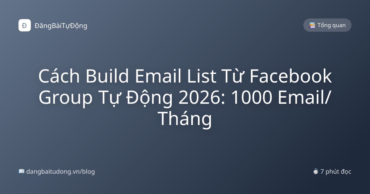 Email list là tài sản marketing duy nhất bạn THỰC SỰ sở hữu — Facebook ngày mai đổi algorithm, tài khoản bị ban, ad cost tăng 3x đều không ảnh hưởng email list. Top marketers Việt Nam đều build list 10K-100K subscriber làm asset 5-10 năm. Bài viết là quy trình build 1000 email/tháng tự động từ Facebook Group, không tốn 1 đồng quảng cáo.