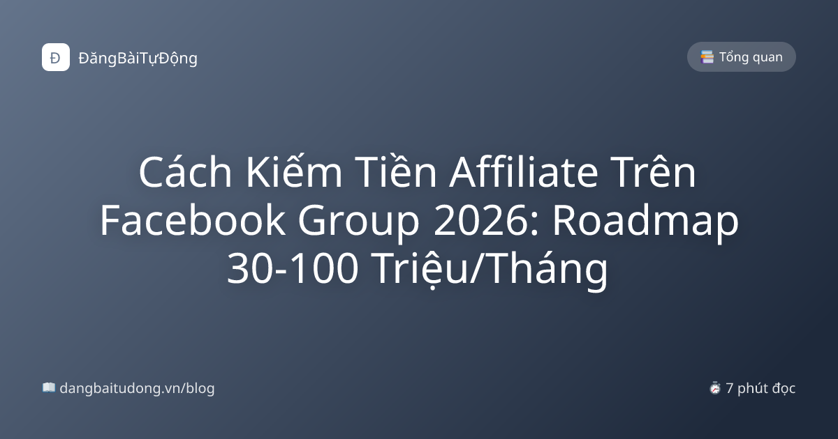 Affiliate marketing trên Facebook Group là một trong những mô hình kiếm tiền online bền vững nhất 2026 — không cần sản phẩm riêng, không lo inventory, scale linear với effort. Top affiliate marketer Việt Nam đạt 100tr-500tr/tháng từ 1-3 group. Bài viết là roadmap chi tiết từ 0 đến 30tr/tháng đầu tiên, áp dụng được dù bạn đang làm full-time job.