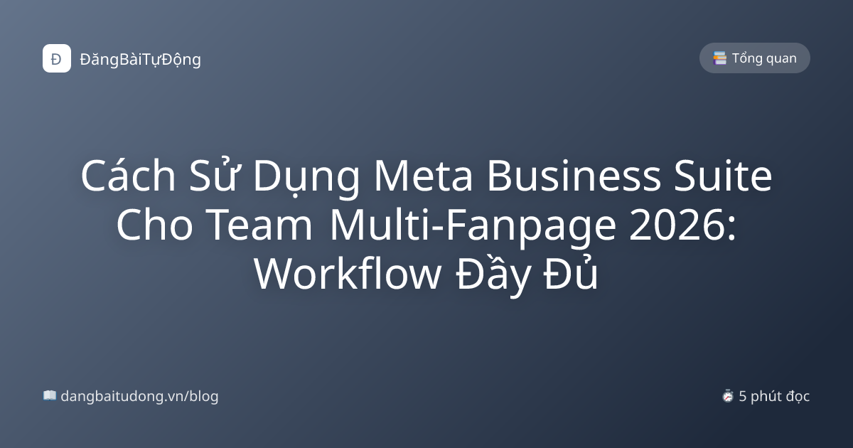 Meta Business Suite (BS) là tool free từ Meta cho team marketing quản lý 2-50 fanpage + Instagram + ads + inbox trong 1 dashboard. 70% agency Việt Nam đang dùng SAI hoặc CHỈ 30% capability của BS — bỏ lỡ scheduling, inbox unified, role-based access. Bài viết là workflow đầy đủ giúp team tiết kiệm 15h/tuần và tránh các sai lầm phổ biến nhất 2026.