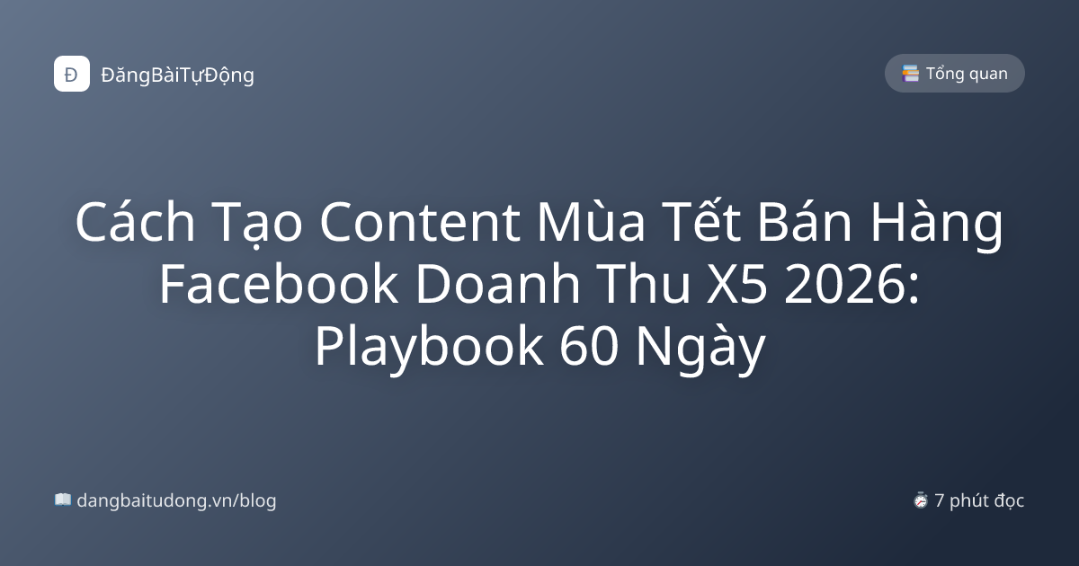Mùa Tết là 60 ngày quyết định 30-50% doanh thu cả năm với hầu hết shop online Việt Nam. Top 5% shop có doanh thu Tết x5 so với tháng thường — nhờ chuẩn bị content và automation từ tháng 11-12. Bài viết là playbook 60 ngày từng tuần đã giúp 18 shop khách hàng đạt doanh thu Tết kỷ lục.