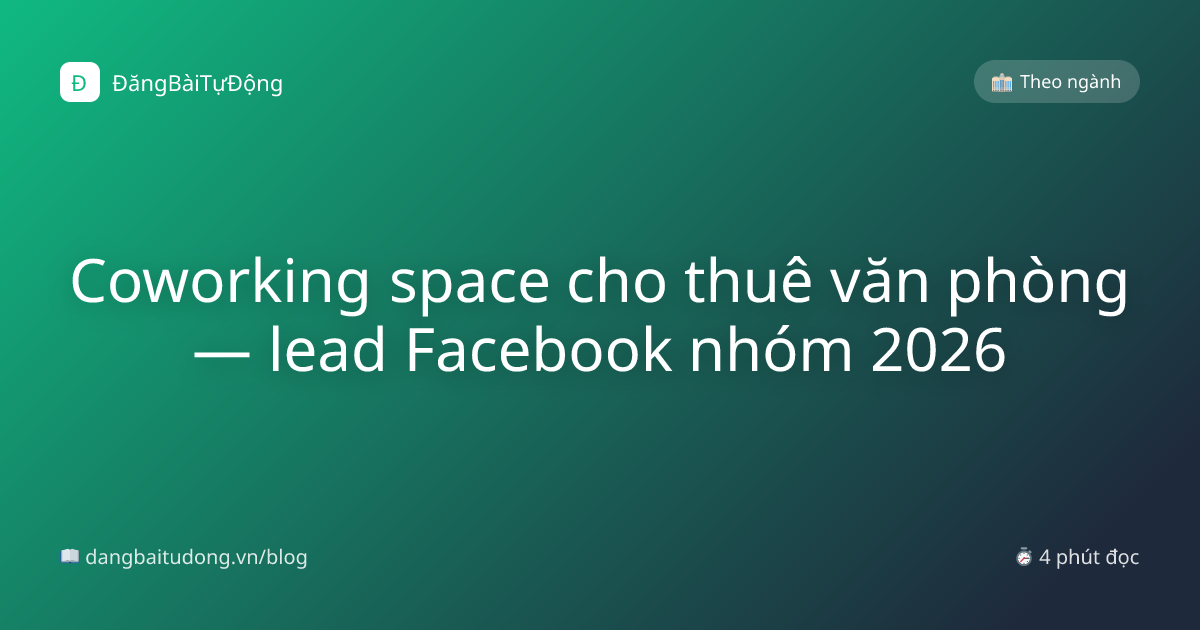 Coworking space (Toong, WeWork, Cogo, Dreamplex) cạnh tranh gay gắt. Facebook nhóm freelancer + startup là kênh organic hiệu quả.