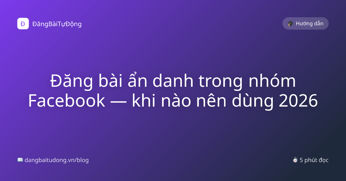 Đăng bài ẩn danh = thành viên trong nhóm thấy bài nhưng không thấy tên người đăng. Tính năng có sẵn ở nhiều nhóm Facebook (admin enable). DBTD support đăng bài qua anonymous mode.