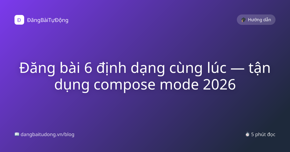 Facebook nhóm support 6 loại bài đăng khác nhau. Mỗi loại có engagement + use case khác. DBTD compose mode 6 chế độ.