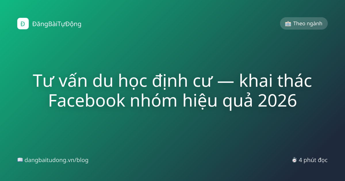 Du học/định cư là quyết định 5-10 năm + chi phí 500tr-2 tỷ. Khách cần research kỹ → trust = factor #1. FB nhóm là kênh build trust hiệu quả nhất.
