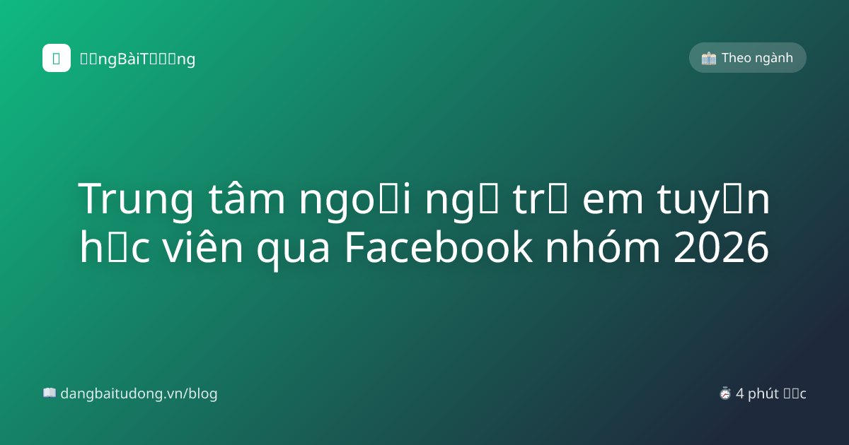 Trung tâm ngoại ngữ trẻ em (English, Mandarin, Korean) cạnh tranh khốc liệt. Facebook nhóm phụ huynh local là kênh organic tốt — mom giới thiệu mom = chuyển đổi cao.