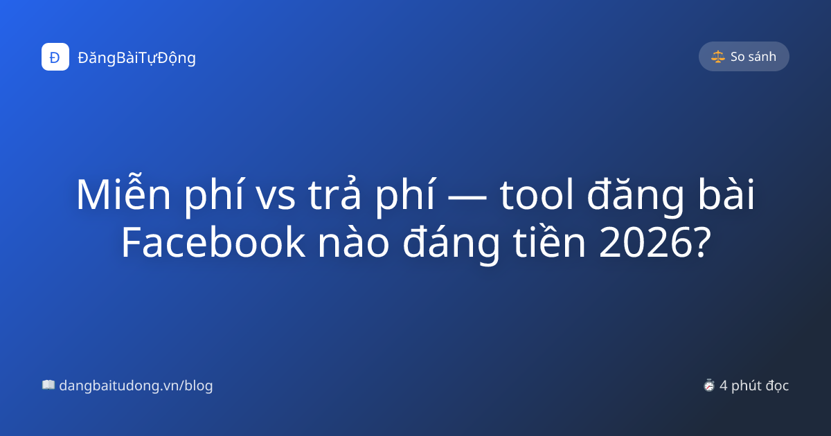 Tool đăng bài Facebook free vs trả phí — đều có pros/cons. Bài này TCO (total cost of ownership) so sánh + when worth pay.
