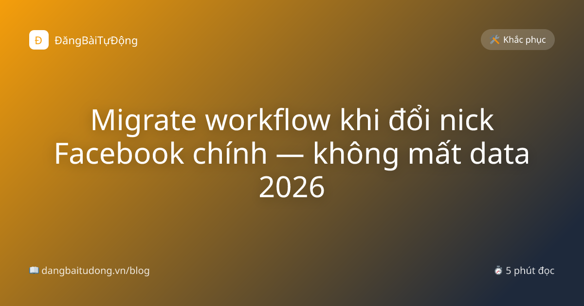 Tài khoản FB chính bị ban → cần switch sang nick backup. Hoặc tự nguyện đổi nick (rebrand). Bài này checklist 6 bước migrate trong 1 ngày.