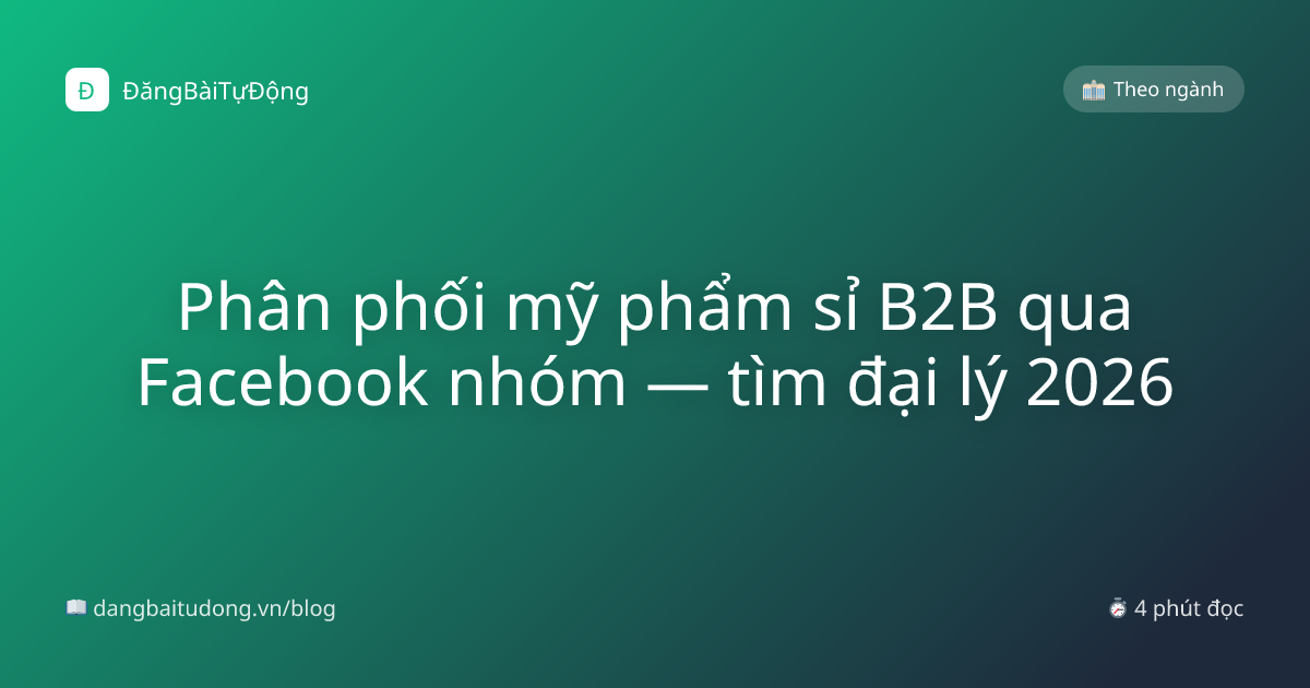 Phân phối mỹ phẩm sỉ B2B (Hàn, Nhật, Châu Âu nhập về VN) cần tìm 50-200 đại lý/spa partner. FB nhóm B2B beauty là kênh chính.
