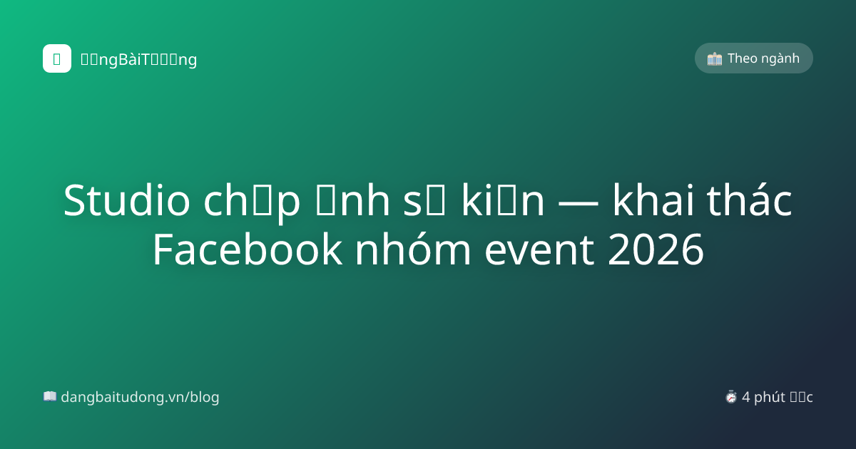 Photographer + studio chụp event (đám cưới, sinh nhật, kỷ niệm công ty, hội đồng môn) cần inbound bookings 1-3 tháng trước event. FB nhóm là kênh proactive search.