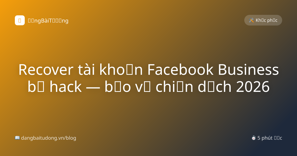 Tài khoản FB Business bị hack = nguy hiểm cấp độ cao. Mất ad account + fanpage + customer database. Bài này quy trình khẩn cấp 30 phút.