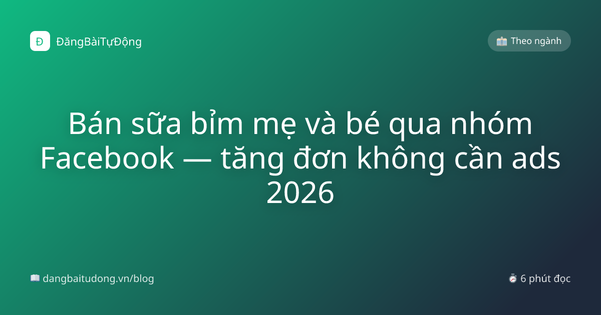 Bán sữa bỉm qua Facebook nhóm = kênh ROI cao nhất ngành mom & bé. Quan trọng: trust + giáo dục + workflow auto + compliance.