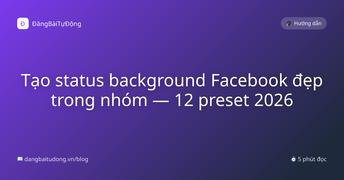 Status text + background gradient = viral nhất cho post text-only Facebook nhóm. DBTD có 12 BG preset built-in.