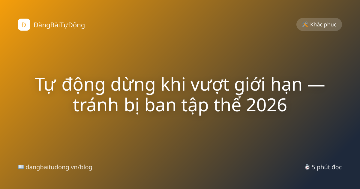 Đặt schedule 200 bài/ngày cho 1 nick FB → vượt limit 100/ngày → bị ban. DBTD per-account limit tracker tự động pause khi gần ngưỡng.